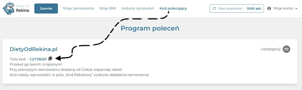 Znajomy używający Twojego kodu przy składaniu zamównienia otrzyma 15% rabatu na swoje zamówienie, a Ty 5% wartości jego zamównienia do skarbonki, w postaci SharkCoinsów. Wystarczy, że podasz mu swój unikalny kod!